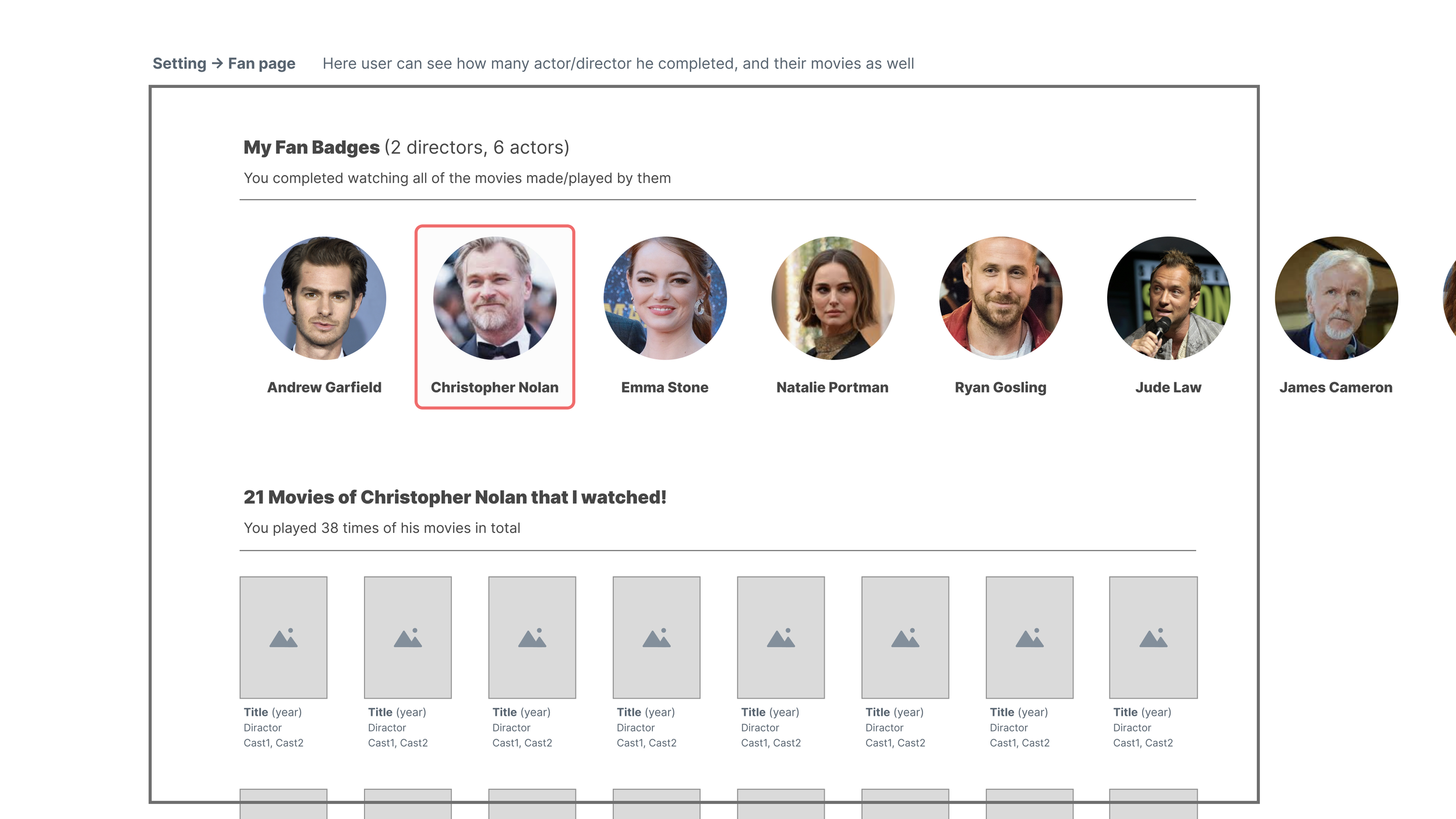 1. With numeric information of how many movies of a specific director/actor that the user has watched, the user would feel achievement, and will try to complete it.