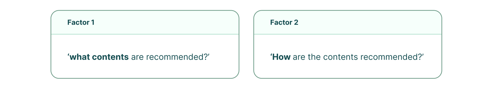 I thought there are 2 factors in the recommendation as below: “What contents are recommended?” and “How are the contents recommended?”
