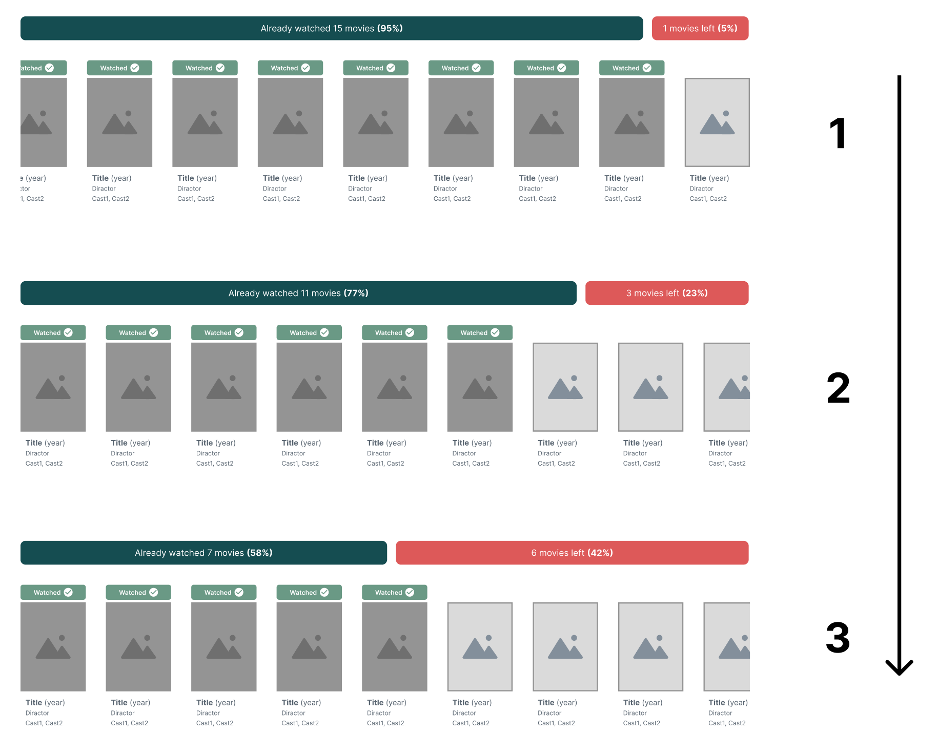 “Just the recommendation list looks like a promotion, so it’s unsatisfactory” (one of the interview summary point) Then let’s show why they are related to you. But how?! Applying the ‘Goal-gradient effect’ & ‘Labeling effect’ to induce people to watch more movies.